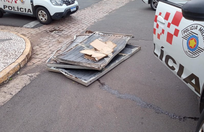 De acordo com a PM, os policiais foram acionados após moradores ouvirem barulhos no telhado do imóvel. Durante o patrulhamento, a equipe localizou o suspeito carregando as placas na esquina das ruas Nhambiquaras e Guaianazes.